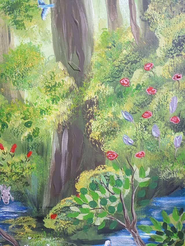 Escuchando el canto de las aves, suena la música del bosque. Las hadas bailan entre la brisa, los unicornios las protegen, y los animales sienten el poder del amor. Las niñas juegan en el riachuelo, dejando que el agua fresca acaricie sus pies. Aquí, el tiempo se detiene. Entra en la calma. Ven a este lugar.